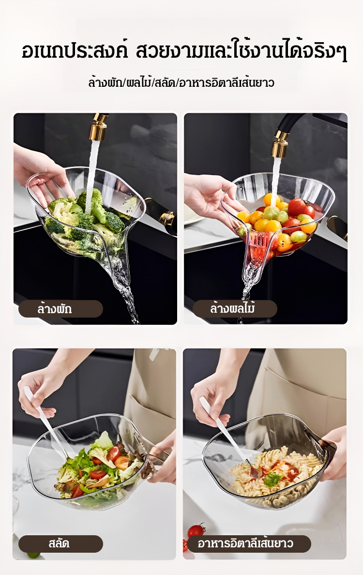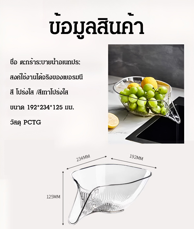 ตะกร้าระบายน้ำโปร่งใสความจุขนาดใหญ่