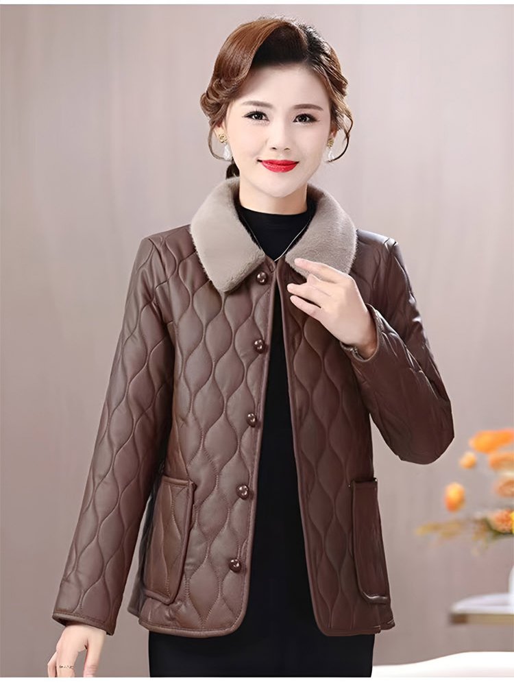 เสื้อดาวน์หนังแท้แฟชั่น บุขนด้านใน