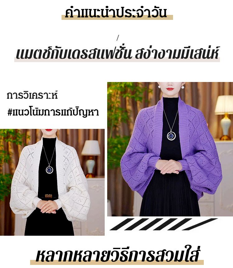 【เสื้อใส่ได้หลายสไตล์】เสื้อคลุมถักลายตารางแบบบสวมได้หลายแบบ แมตช์ง่าย